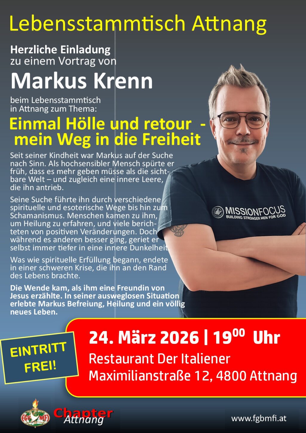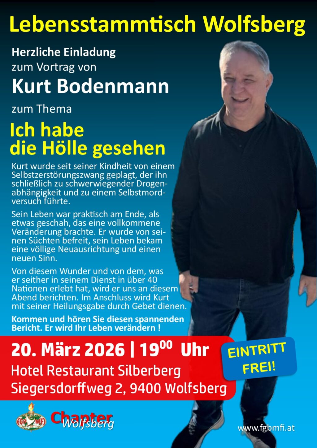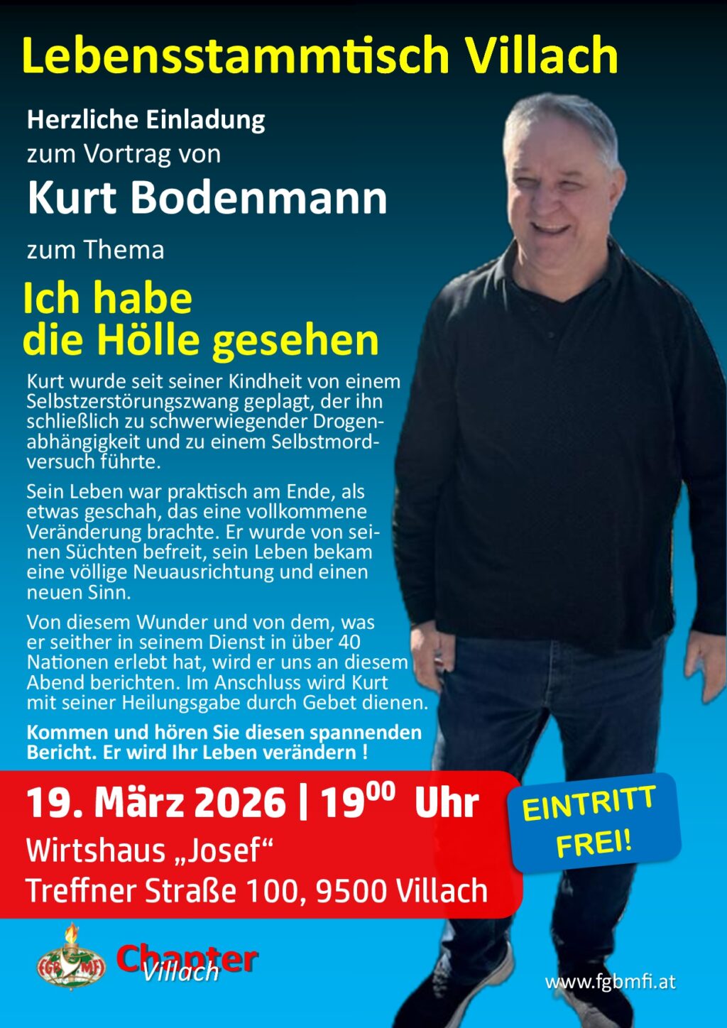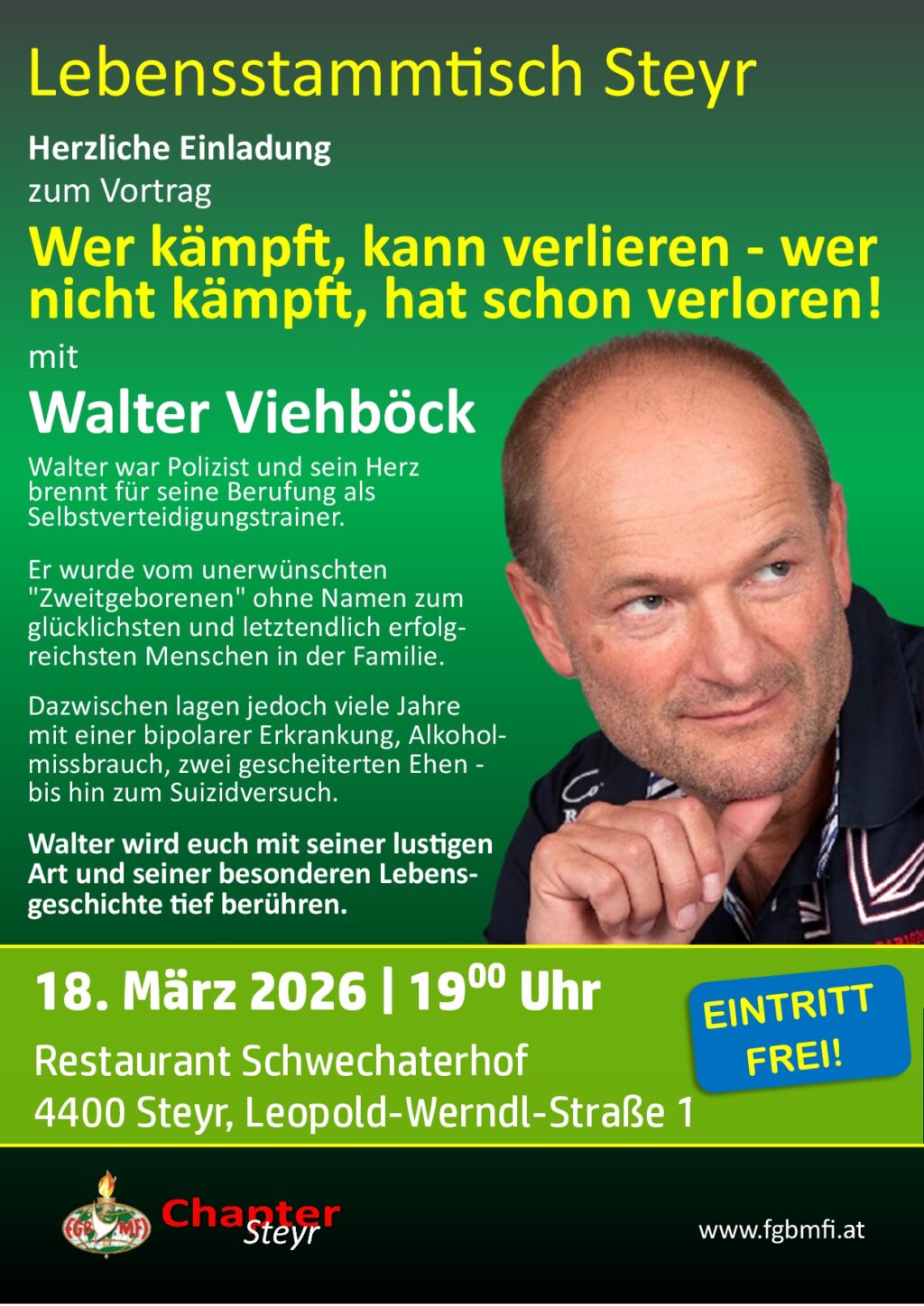 Am: 24. Februar 2026 von 19:00 bis 21:00 Uhr Ablauf: 19-20 Uhr gemeinsames Abendessen, 20-21 Uhr Lebensbericht … Wo: Restaurant Bokan, Mainersbergstraße 1, 8051 Graz Mit: Maria Dallamaßl Zum Thema:[…]