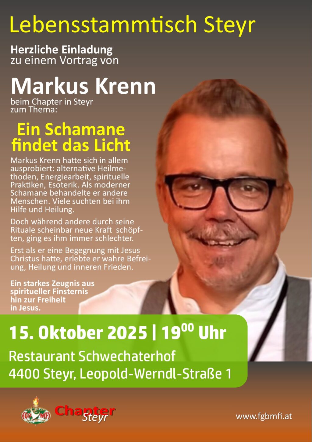 Die heilende Kraft Gottes auch heute erleben und weitergeben Am: Mittwoch, 21.5.2025, 19:00 Uhr — Wo: Schwechaterhof, Leopold-Werndl-Straße 1, 4400 Steyr — Eigentlich wollte er Steuerberater werden, aber es kam anders. Manfred Mitteregger – aus einem unreligiösen Haus – erlebte bereits in jungen Jahren eine intensive Berührung von Jesus Christus. Er studierte Theologie und wurde…