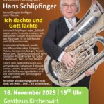 Franz Bernhardt: „Wie GOTT mich berührte und mir durch’s Leben half“ - Am: Dienstag, 16.9.2025, 19:30 Uhr —Wo: Landhotel Puttererseehof, 8943 Aigen 13Als Franz in der Kindheit schwere Verbrennungen erlitt, griff Gott in sein Leben ein.Dadurch begab sich Franz schon sehr früh auf die Reise nach der Wahrheit und immer wieder kam er mit der Bibel in Kontakt.Sein Weg führte ihn über die Zeugen Jehovas und die… Read more