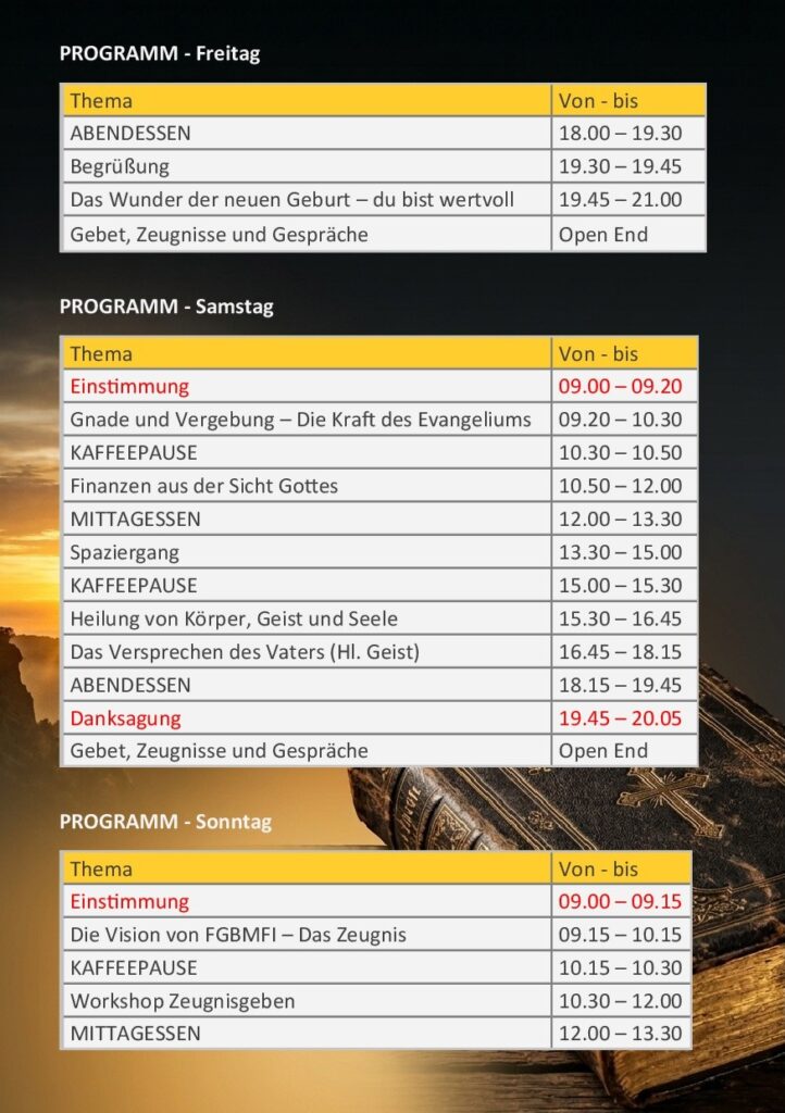 Nächstes FGBMFI-Seminar vom 29.5.-31.5.2026