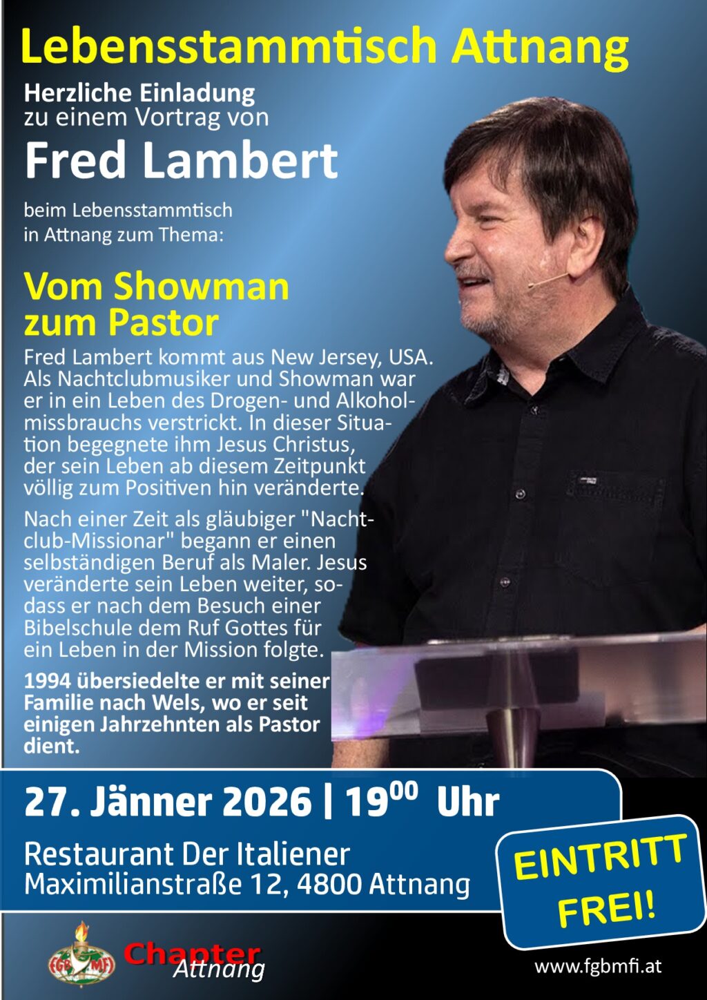 Am: Montag, 29. Dezember 2025 um 19:30 UhrWo: Landhotel Häuserl im Wald, Gersdorf 71, 8962 Mitterberg-Sankt Martin — Elke war ihr Leben lang nach auf der Suche nach dem Sinn des Lebens. Sie probierte vieles aus, doch nichts hielt dauerhaft. Erst in der Begegnung mit Gott fand ihre Suche ein Ende. In Jesus entdeckte sie…