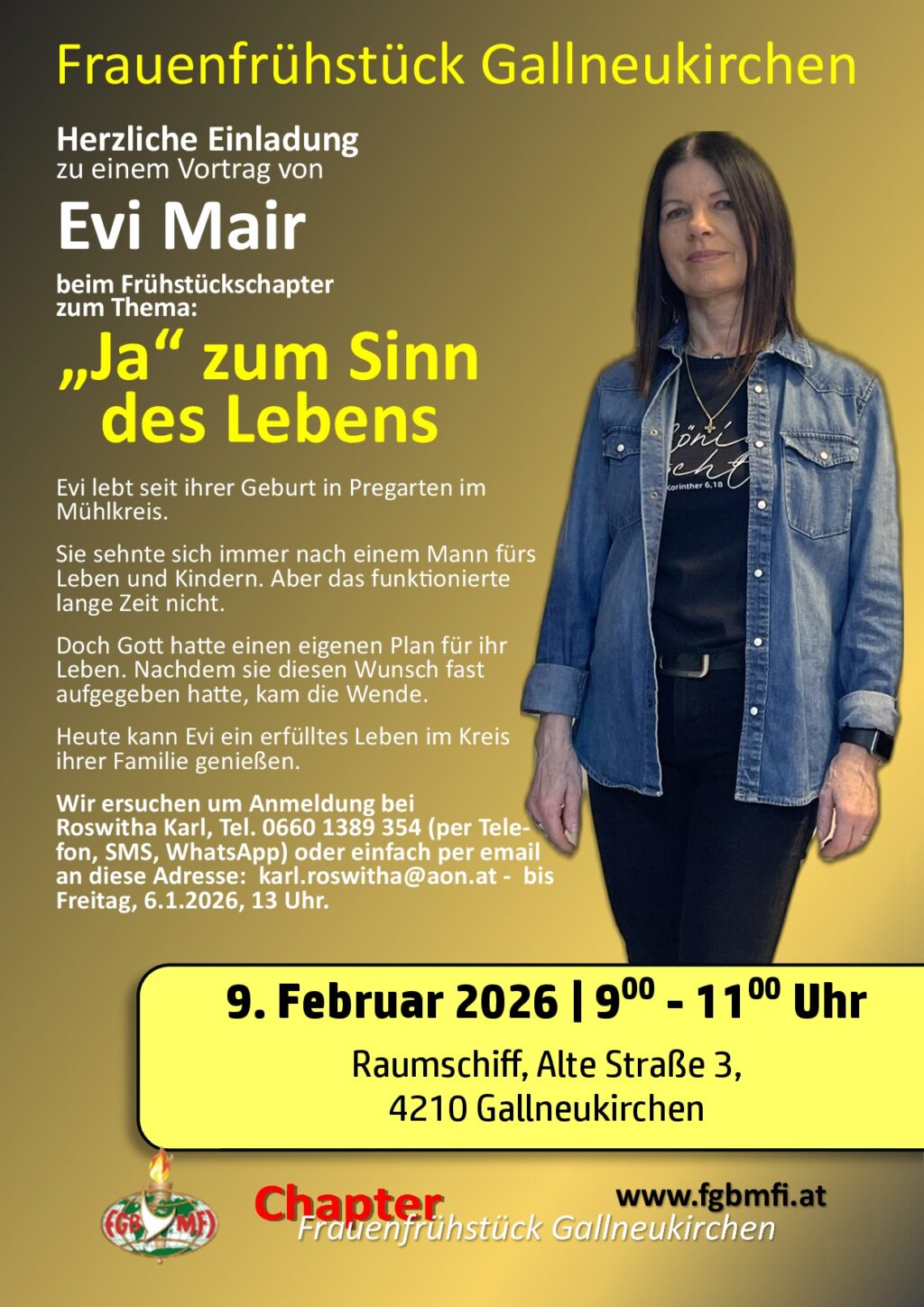 Am: 24. Februar 2026 von 19:00 bis 21:00 Uhr Ablauf: 19-20 Uhr gemeinsames Abendessen, 20-21 Uhr Lebensbericht … Wo: Restaurant Bokan, Mainersbergstraße 1, 8051 Graz Mit: Maria Dallamaßl Zum Thema: Ist das Leben unfair? Sie erlebte ein strenges Elternhaus auch mit Gewalt und der Glaube wurde mit Zwang weitergeben. Mit schulischen Leistungen konnte sie, im…