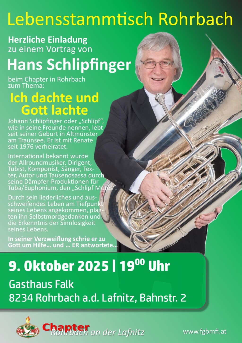 Am: Dienstag, 7.10.2025, 19:00 Uhr — Wo: Pizzeria L’Chaim, Kürnbergstraße 2, 4061 Linz. Franz ist in Bad Leonfelden aufgewachsen. Er lebt seit 38 Jahren mit seiner Frau Elfi in der Nähe von Gallneukirchen. Sie haben vier erwachsene Kinder und sechs Enkelkinder. Beruflich ist er in einer Interessensvertretung für Unternehmen tätig. Franz studierte Rechtswissenschaften an der…
